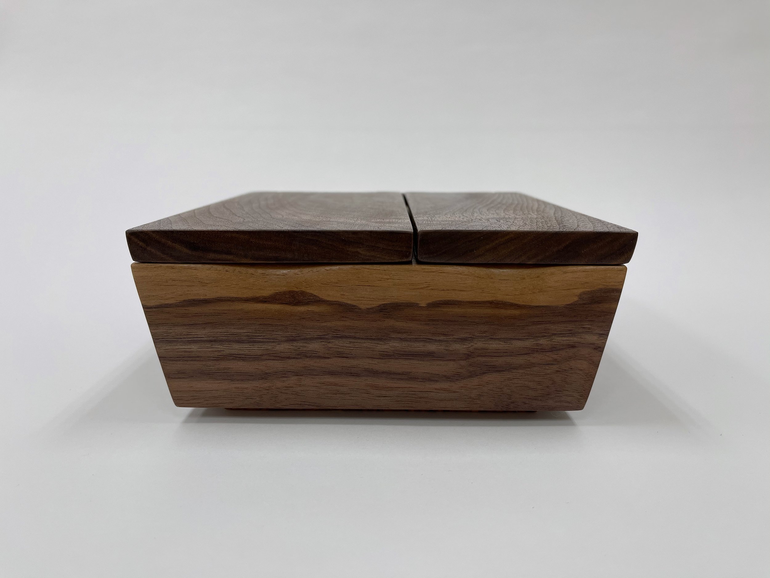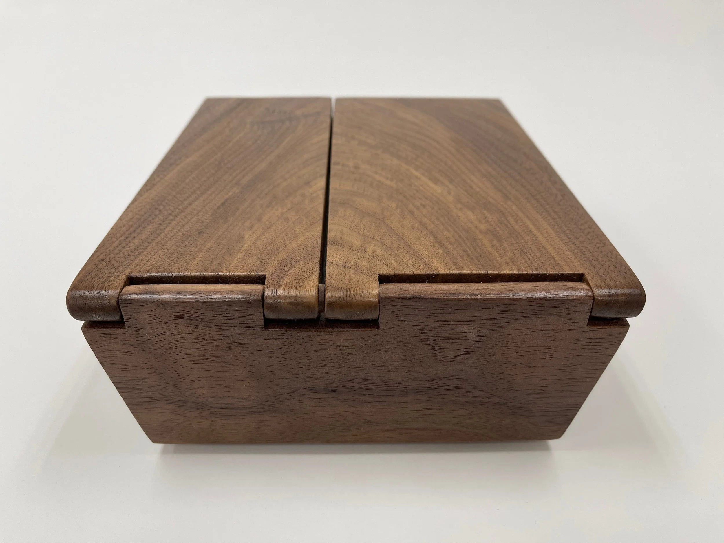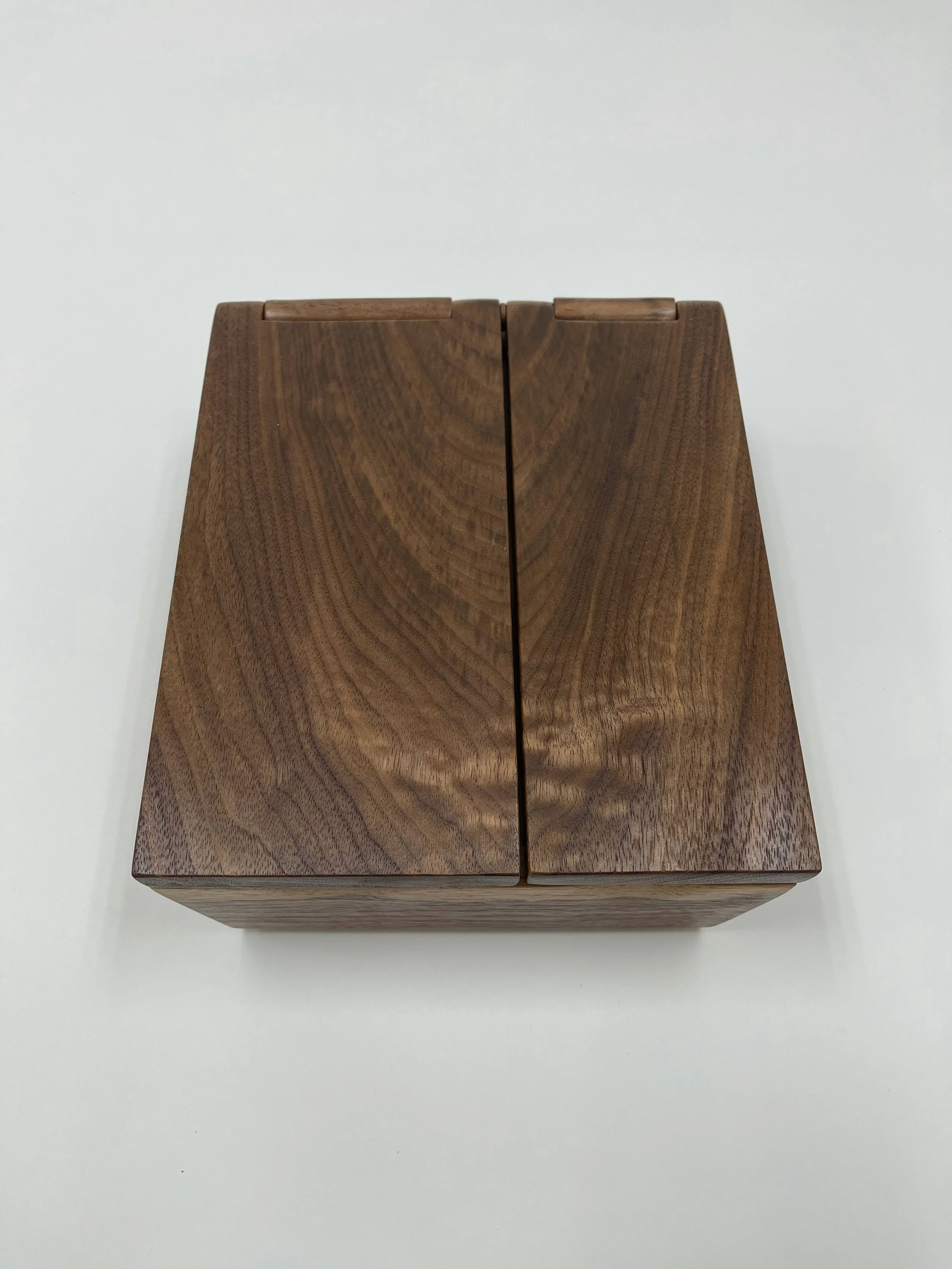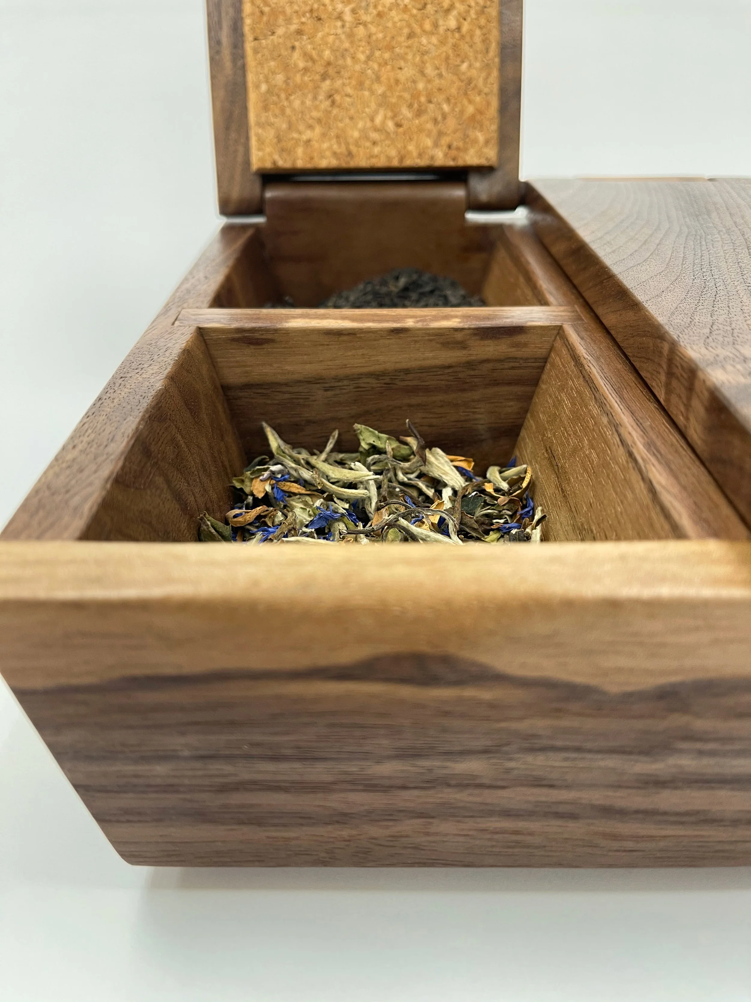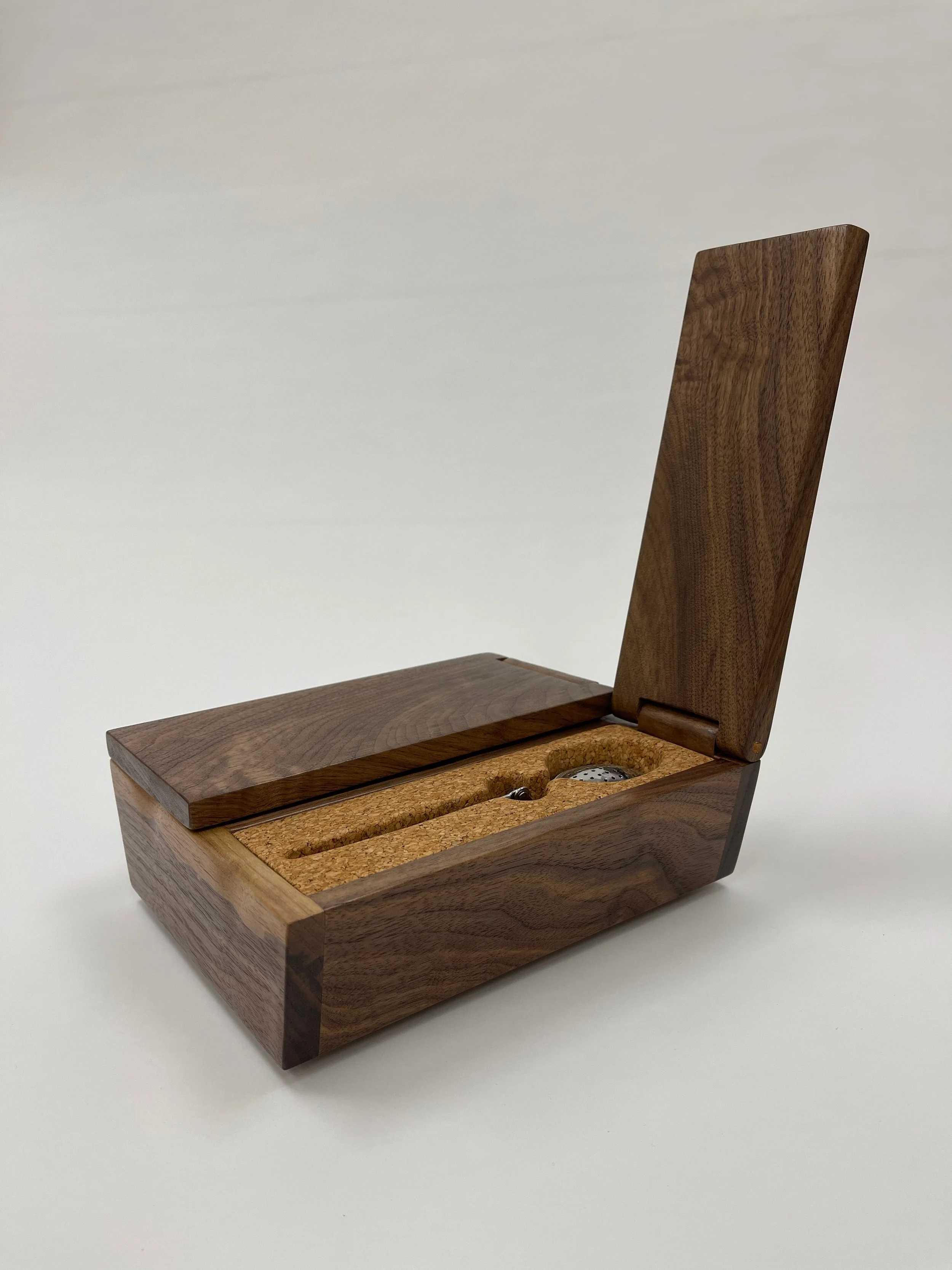 Walnut and cork with an integral hinge, finished with two coats of salad bowl oil